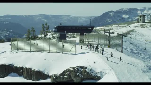 Wide Shot Push in on Skiers Skiing down mountain