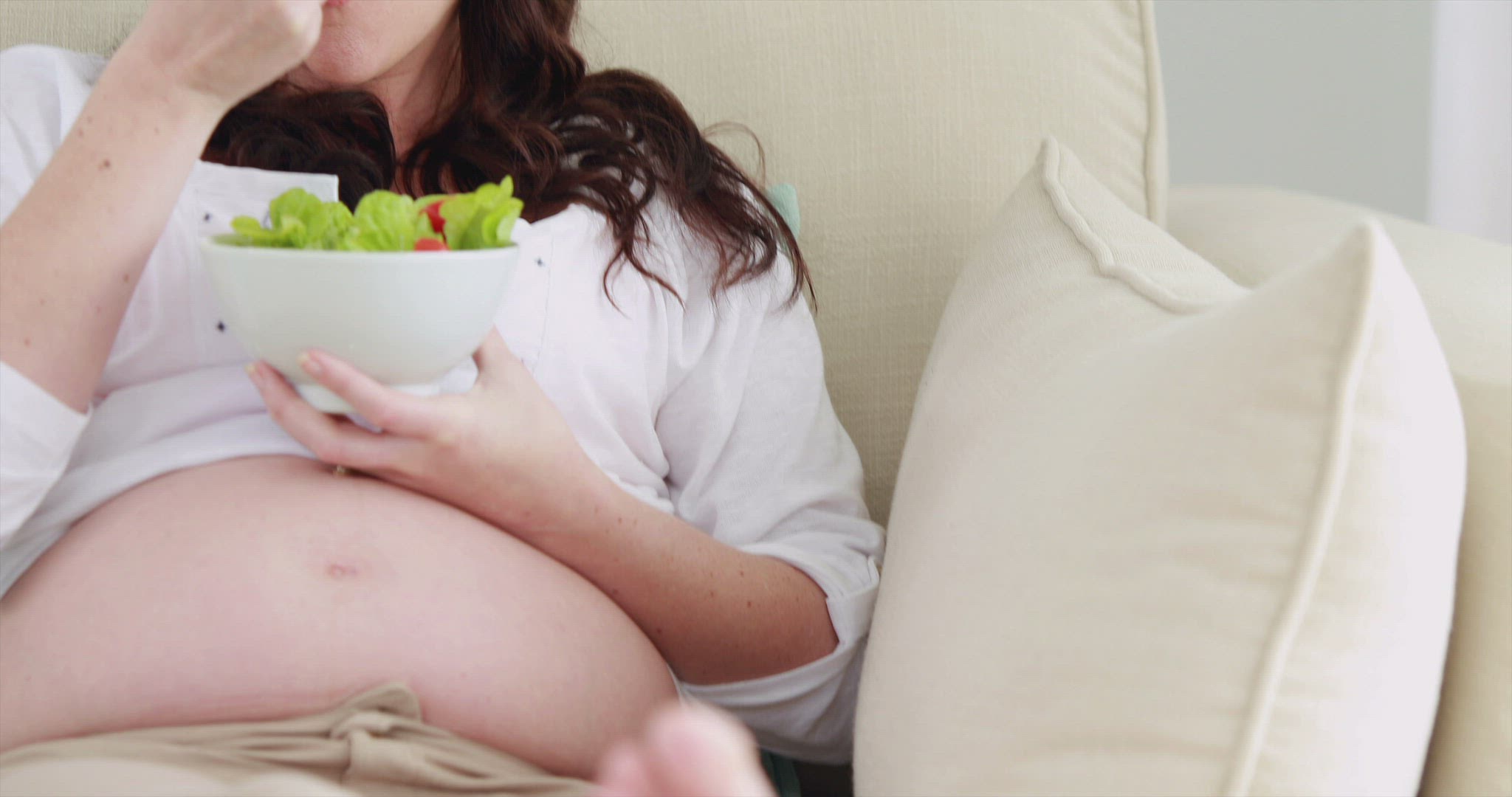 417893 - Young Woman On Bed Eating Vegetable Salad