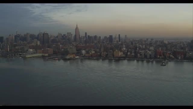> Wide shot Manhattan with water in foreground