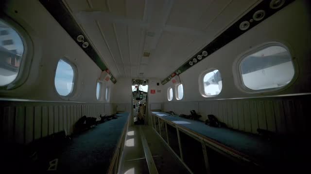 Inside an empty plane that is flying