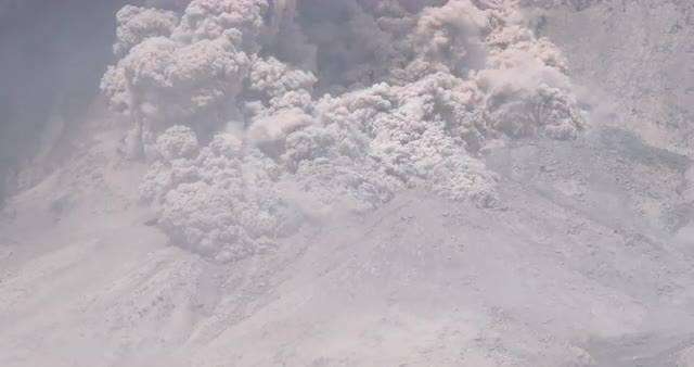 Huge volcanic eruption pyroclastic flow and ash cloud sweeps across farmland at Sinabung volcano. Original footage shot on Sony PXW Z100 in 4K 4096x2160 30p 300Mbps - III