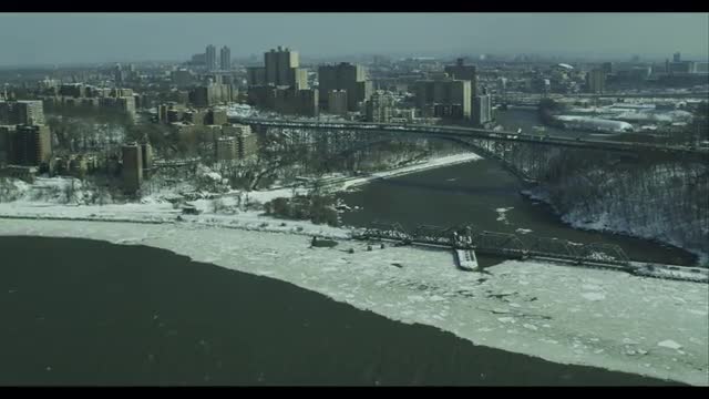 Bronx Bridge, Wide shot, winter, snow and ice