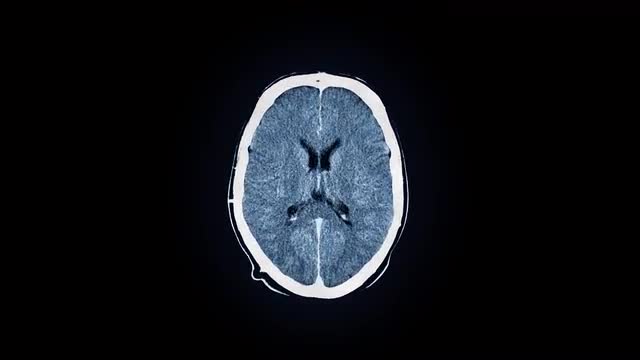 Human brain MRI scan. Top view. Smooth motion, blue tint. (av4133c)