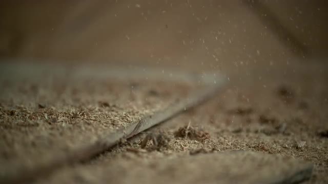 Slow Motion shot of sawdust falling to to the ground