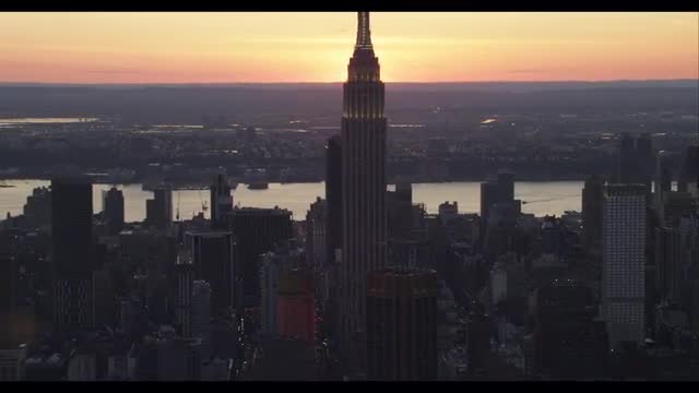 Slow sweeping of manhattan, sunset, empire state, skyline
