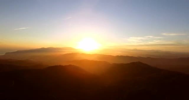 4K Aerial, Flying into sunset in Andalusia, Spain