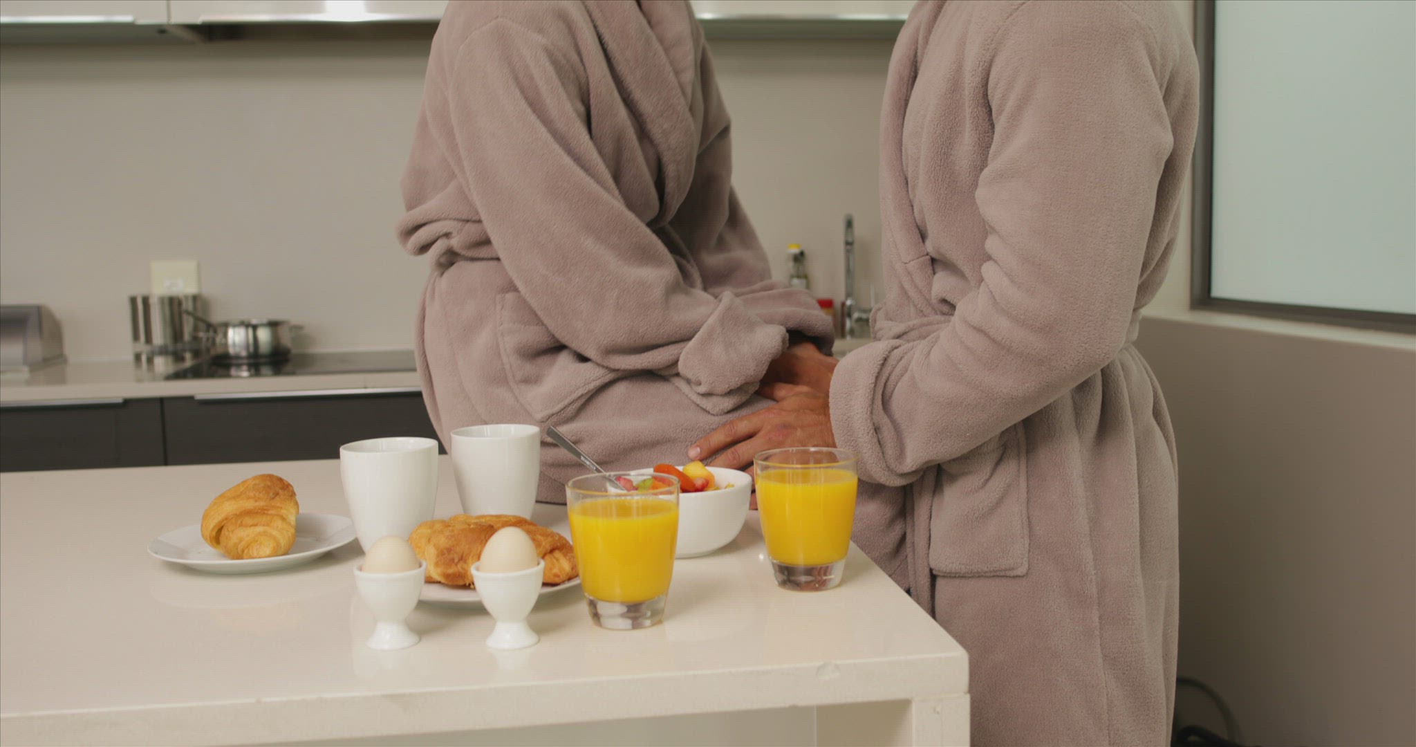 2119938 - Couple in white bathrobes at spa resort, Alta Badia, Italy