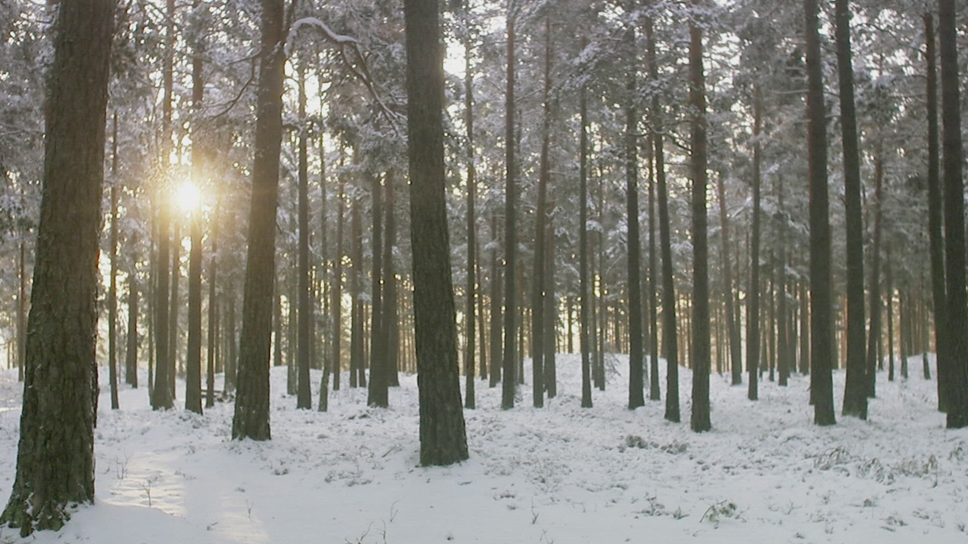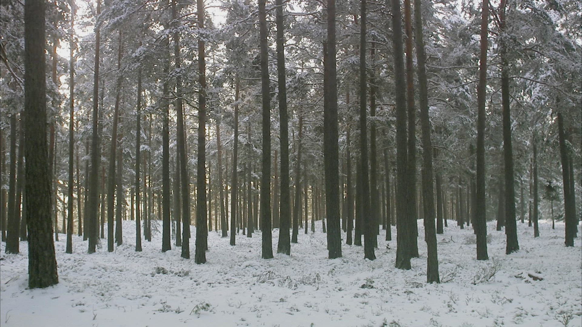 > Snowfall in a red pine forest