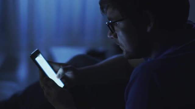 Man is Browsing Internet on Phone at Night