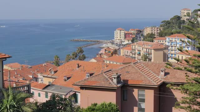 938609 - View of Diano Marina at sunset from above town, Diano Marina, Imperia, Liguria, Italy, Europe