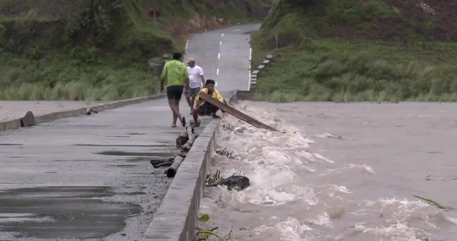 Huge bits of debris in fast flowing river flood waters after hurricane dumps huge amount of rain. Originally shot in 4K on Sony PXW Z100 4096x2160 30p - KoppuII