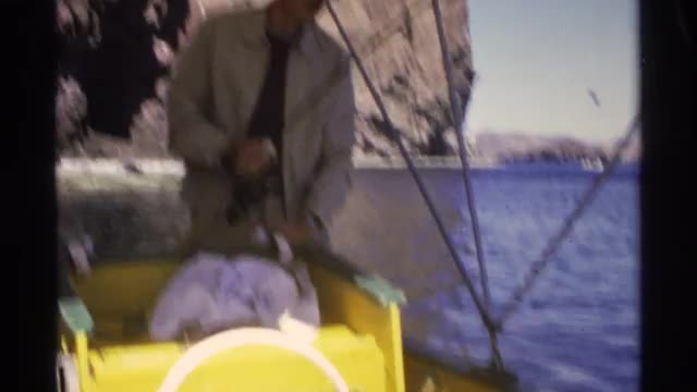 731490 - 1975: man fishing on a yellow boat GUAYMAS MEXICO