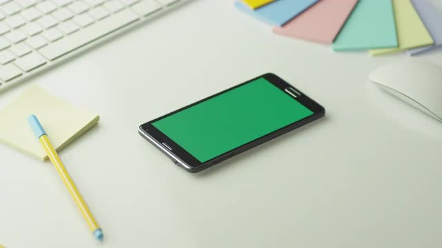 Designer is Using Android Phone with Green Screen in Landscape Mode.