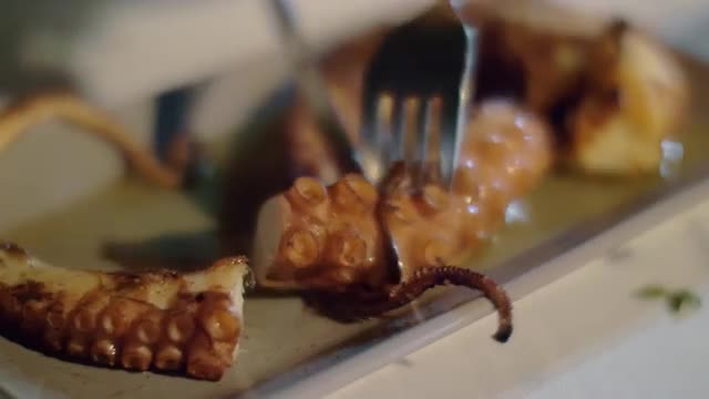 708838 - Having dish with fried octopus