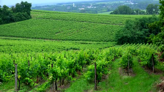 581217 - Landscape, Grape and young leafs vine in rain