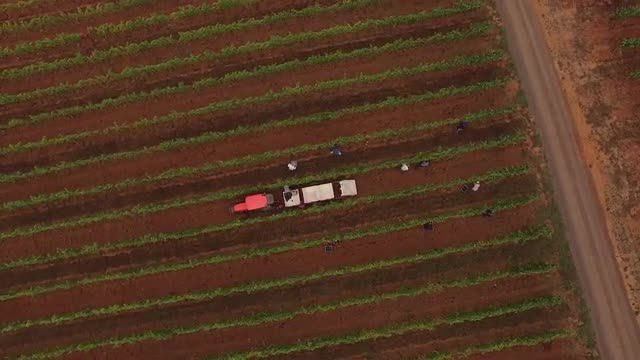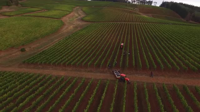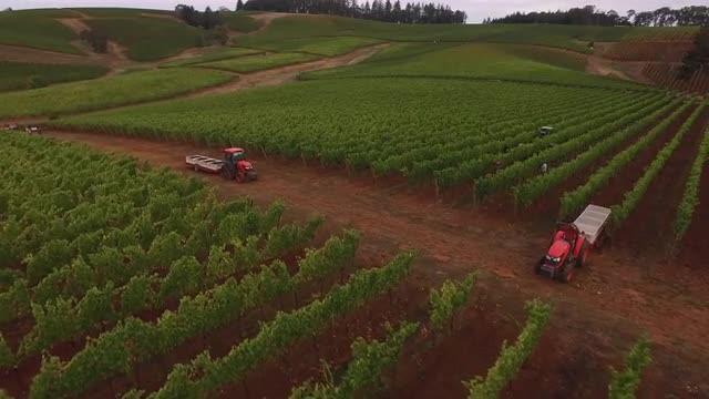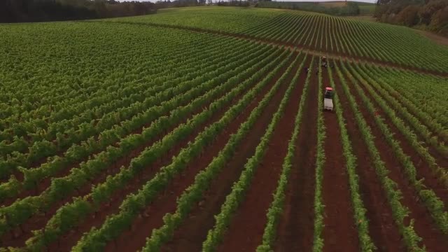 995943 - Aerial view of grape harvest at Oregon vineyard