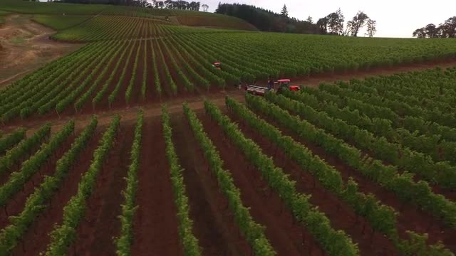 995944 - Aerial view of grape harvest at Oregon vineyard