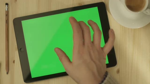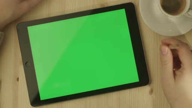 Girl Holding Tablet PC with Green Screen