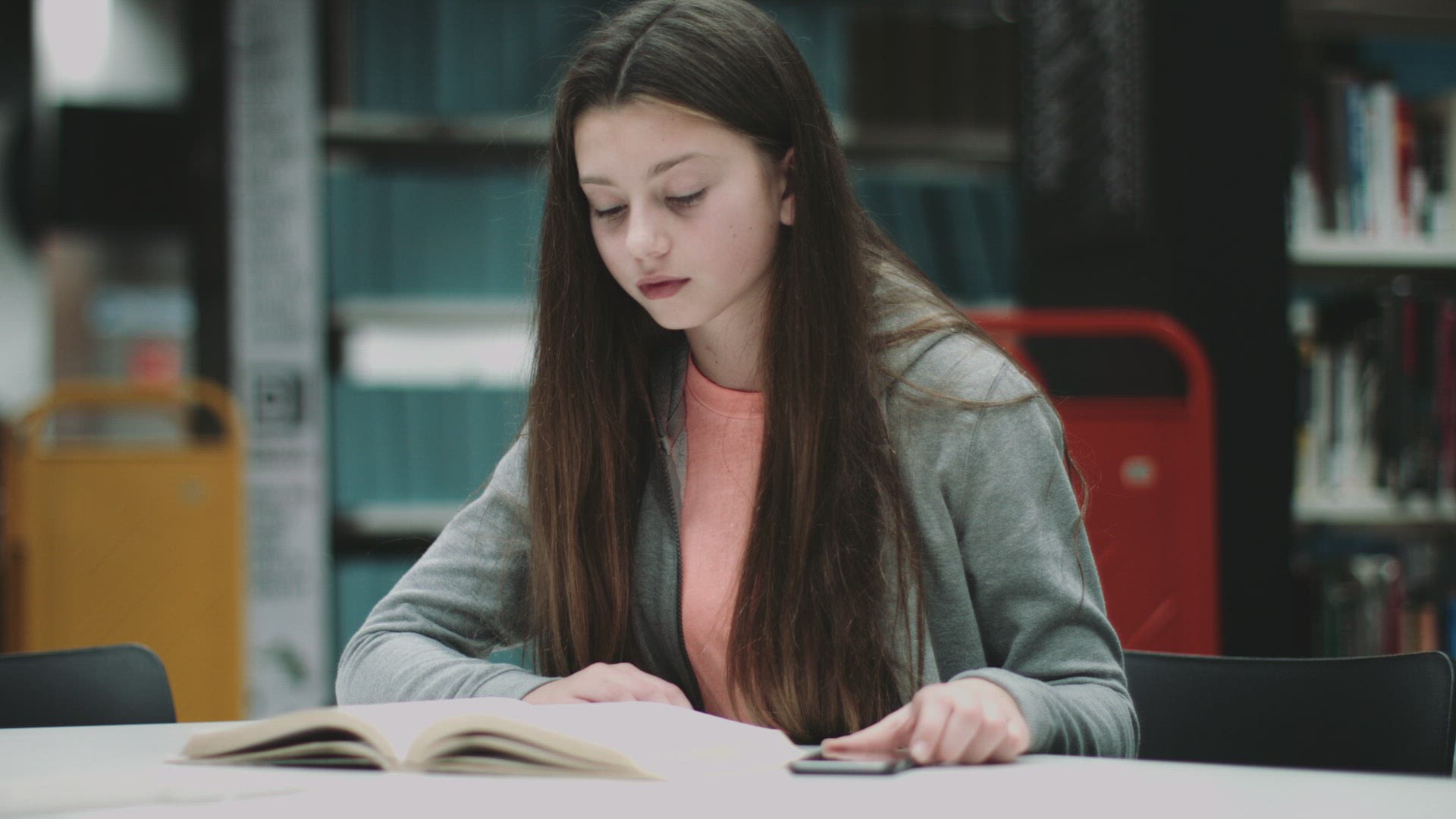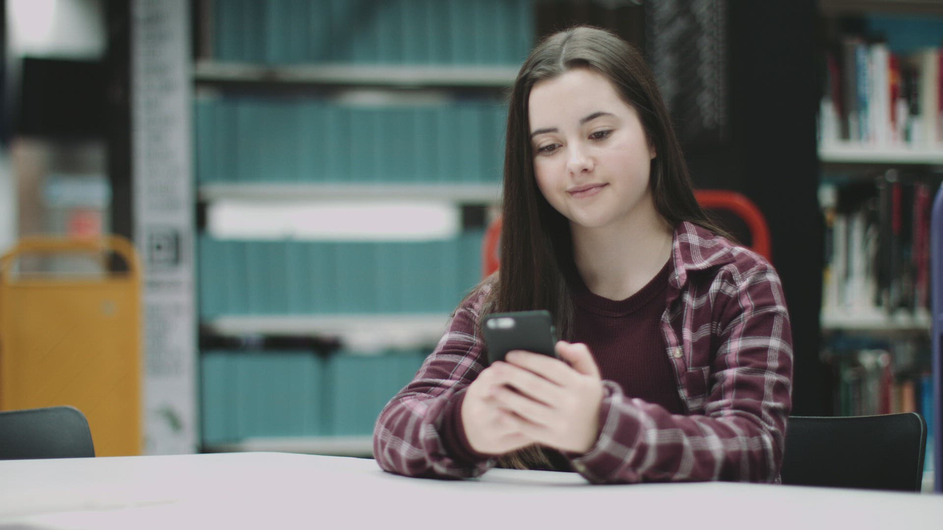 674824 - Cute Little Teenage Girl Grimaces and Doing Selfie on Mobile Phone Indoor