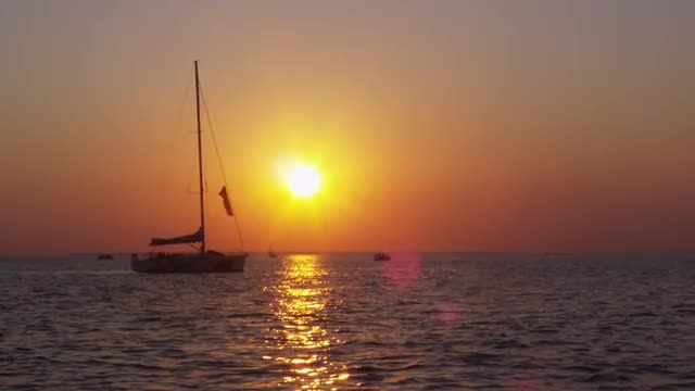 Sailboat Wake Foam in Ocean at Sunset