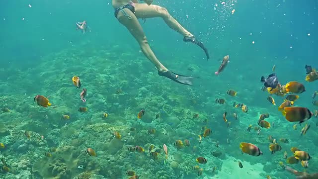 676414 - Girl Snorkeling Fish Coral Reef Indonesia Bali Underwater Slowmotion