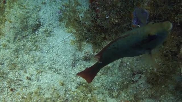 This catfish is swimming aroud corals to find some food