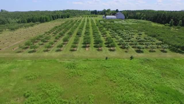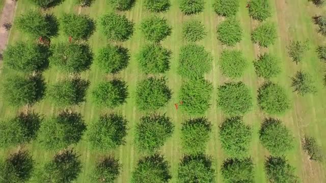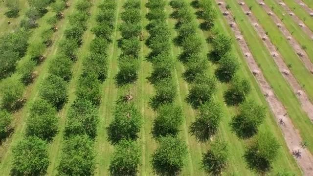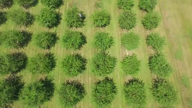 345334 - flying forward looking down over tree rows