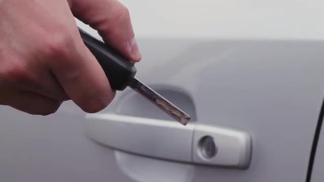 The driver shifts gears on an automatic transmission.