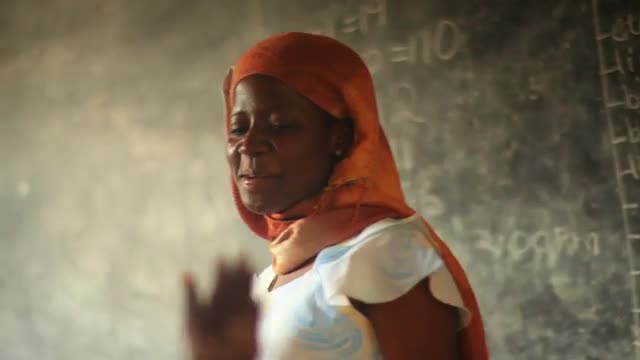 83342 - Schoolteacher in a full classroom in Kenya.