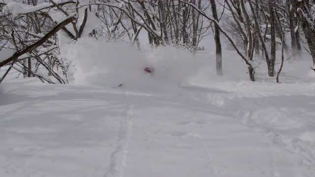 > Person skiing down mountain
