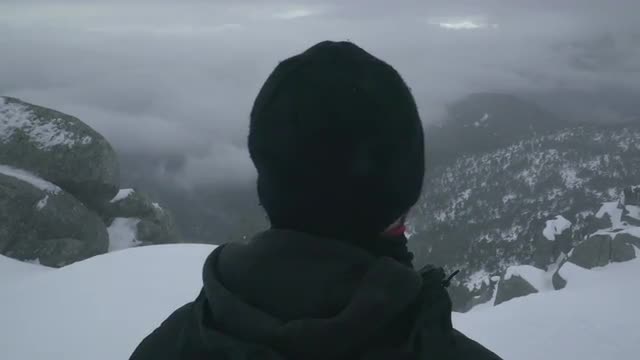 499017 - Aerial shot of man standing atop mountain peak 2
