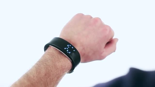 A Man Adjusts a Fitness Bracelet on His Arm.