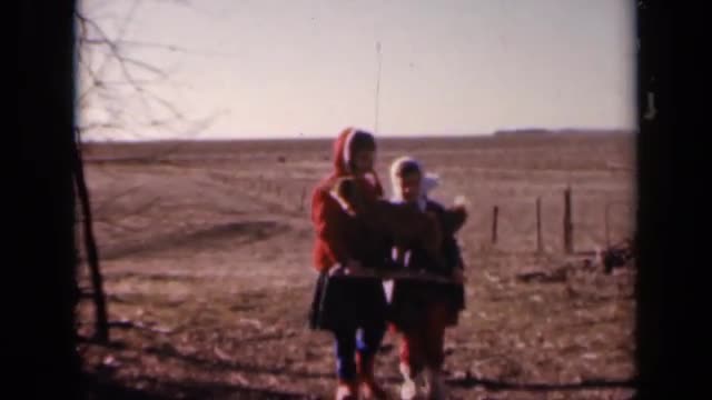 713751 - 1964: two children carry stuffed fox through field KANSAS