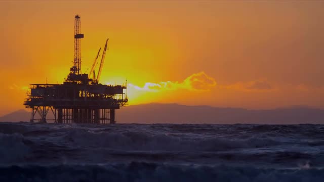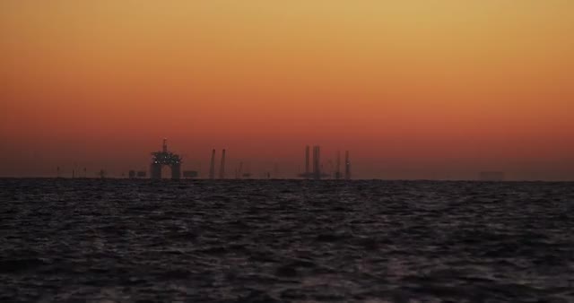 39178 - Slow Motion Sunset Oil Producing Platform Ocean