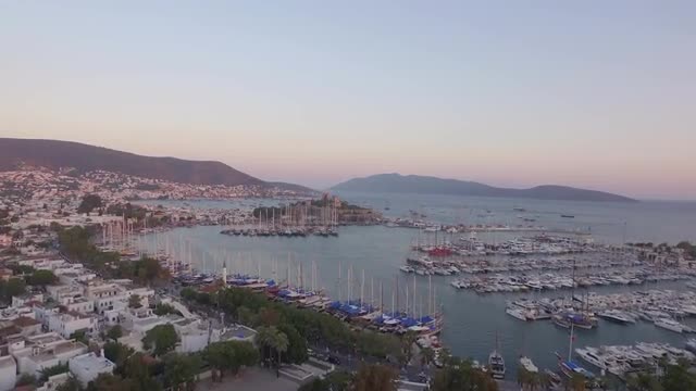 4K aerial footage of Bodrum Castle and Marina.