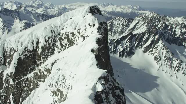 > Aerial shot of snowy mountains 6