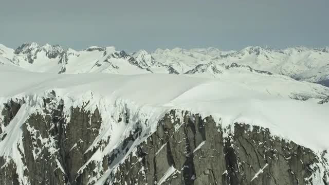 499078 - Aerial shot of snowy mountain ridgeline revealing peak