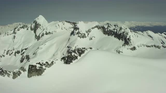 Aerial shot of snow field and mountain range