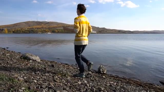 A man plays the Tibetan bowls.