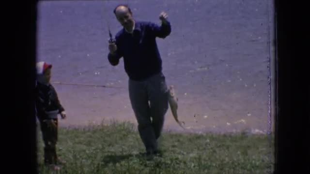 651480 - 1964: father and son finishing with father holding up his catch PHILADELPHIA PENNSYLVANIA