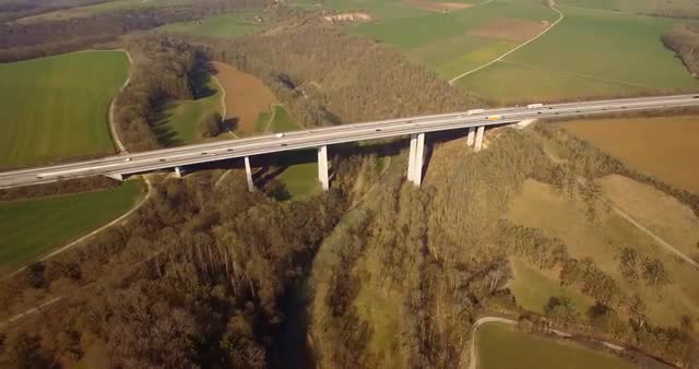 > 4K Aerial, Flight along a huge bridge in germany