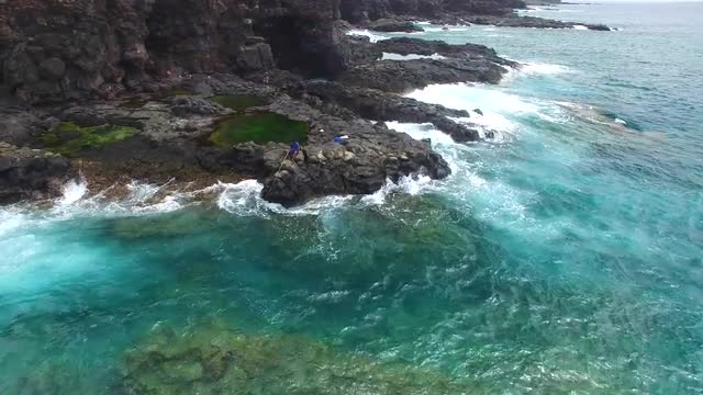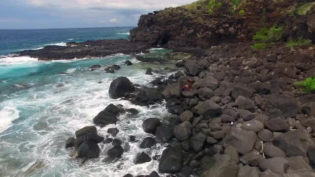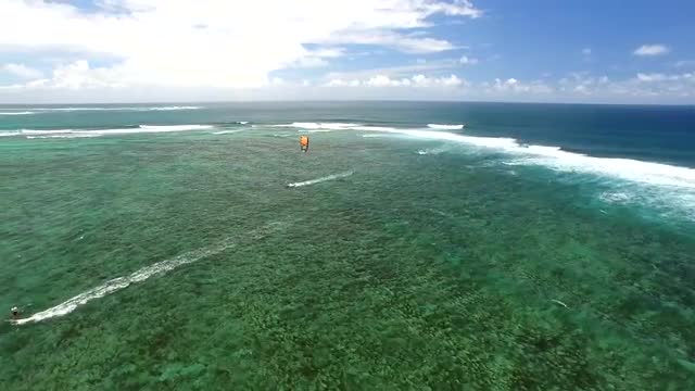 Flying on the Coast Line of the Ocean on the Drone. Amazing Mauritius