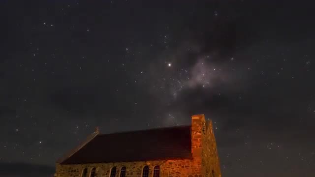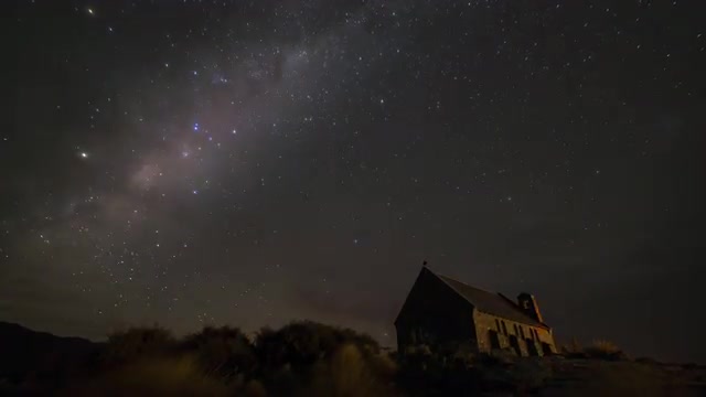 773046 - Time Lapse - Milky Way rises behind the Church of the Good Shepherd, Lake Tekapo, New Zealand