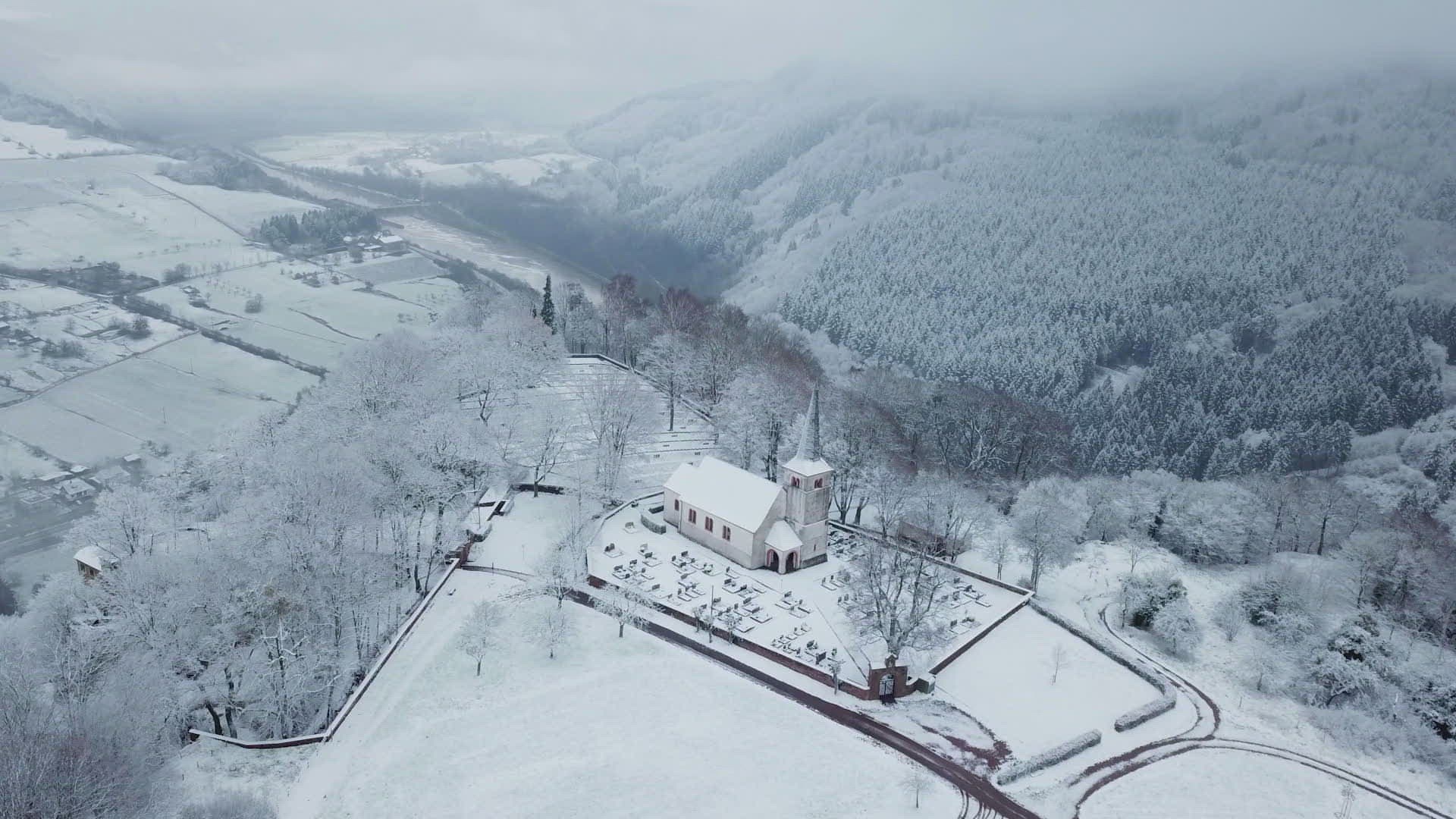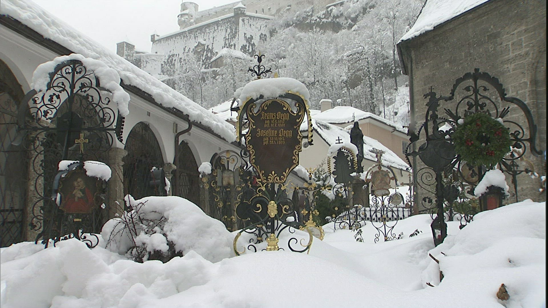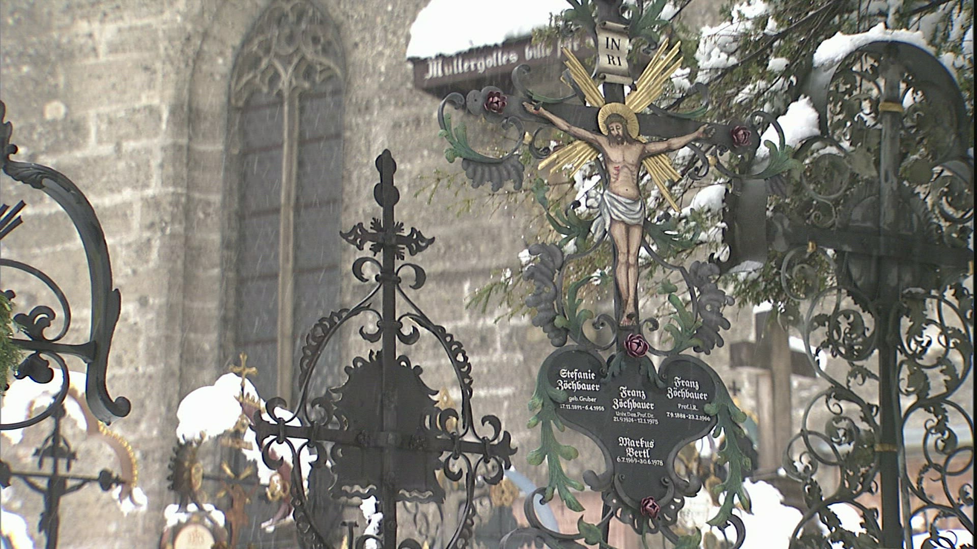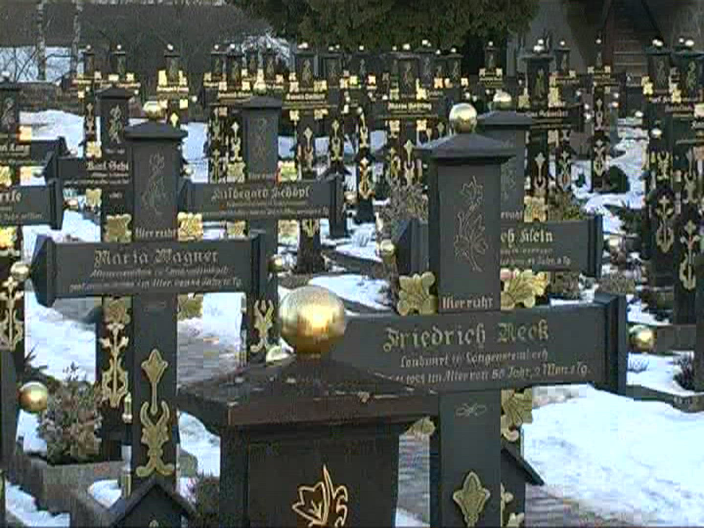 Cemetery at midnight Time lapse 4K. It`s cold winter during strong glaciation of the near landscape.