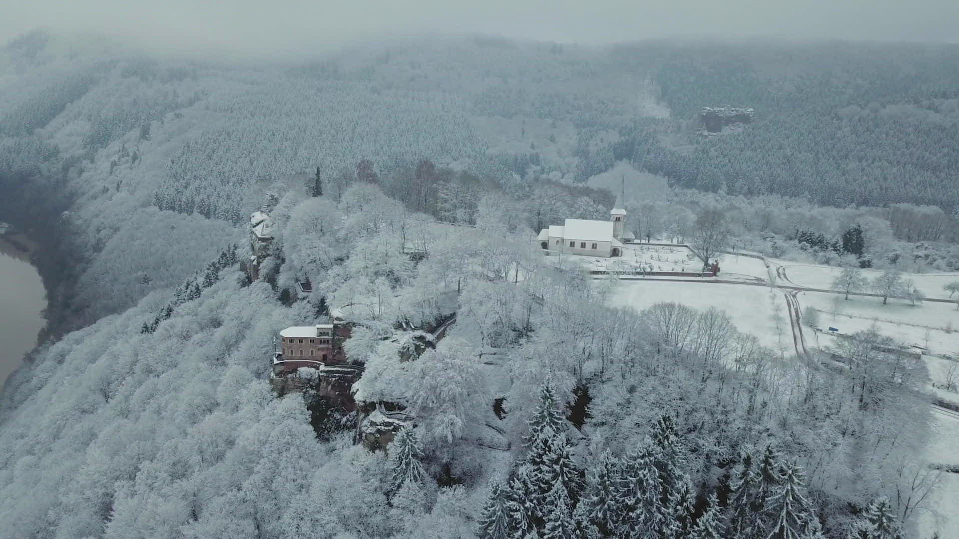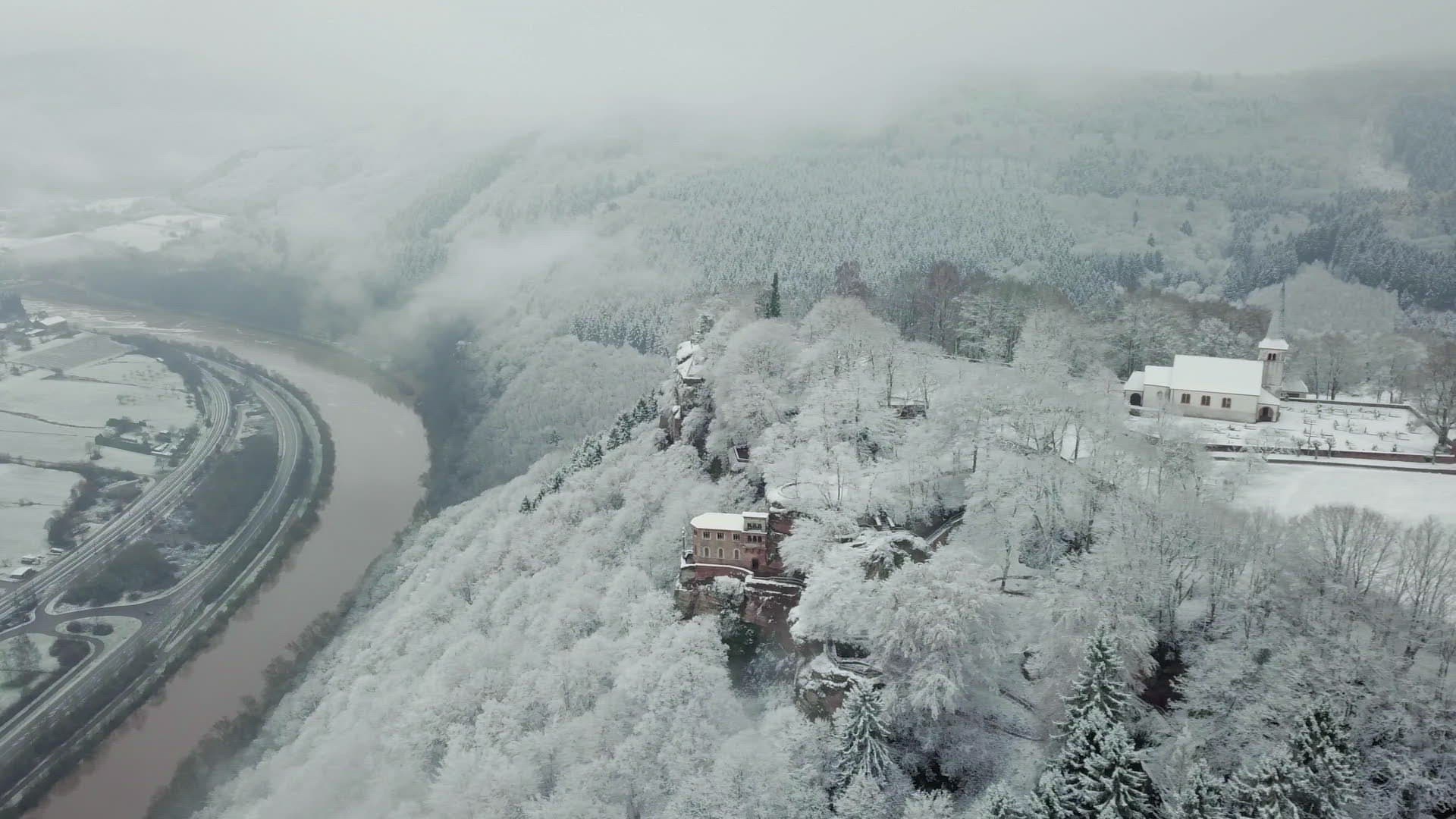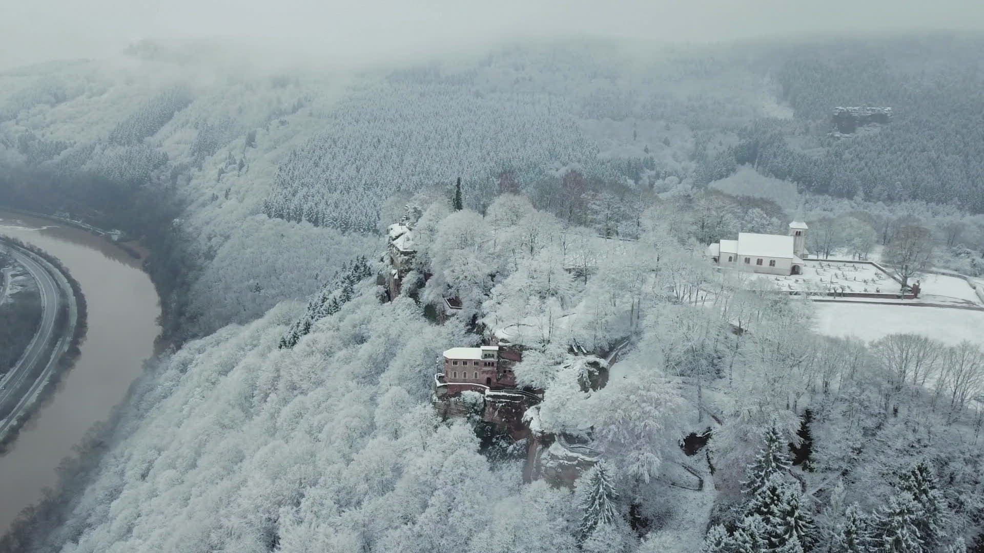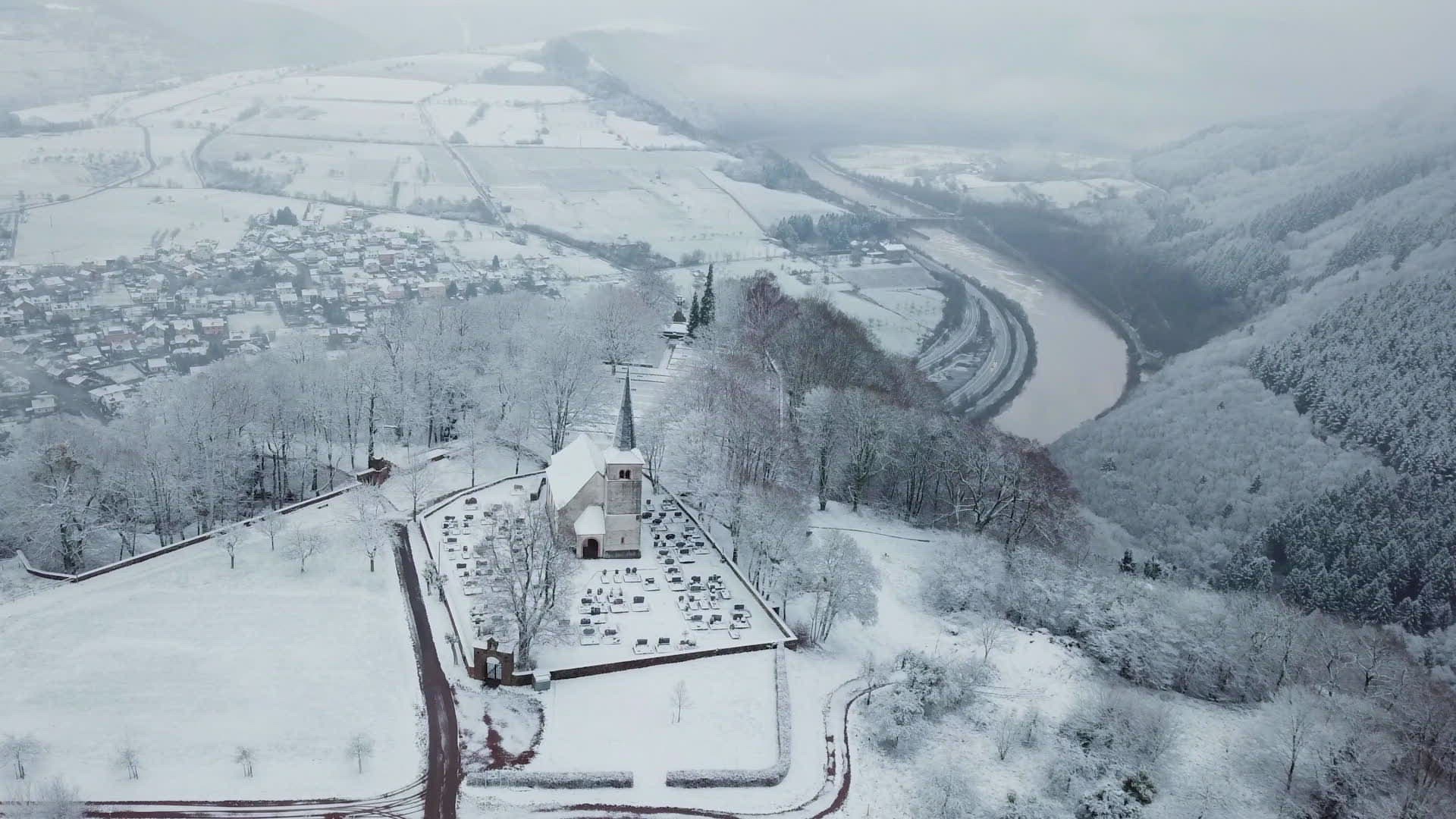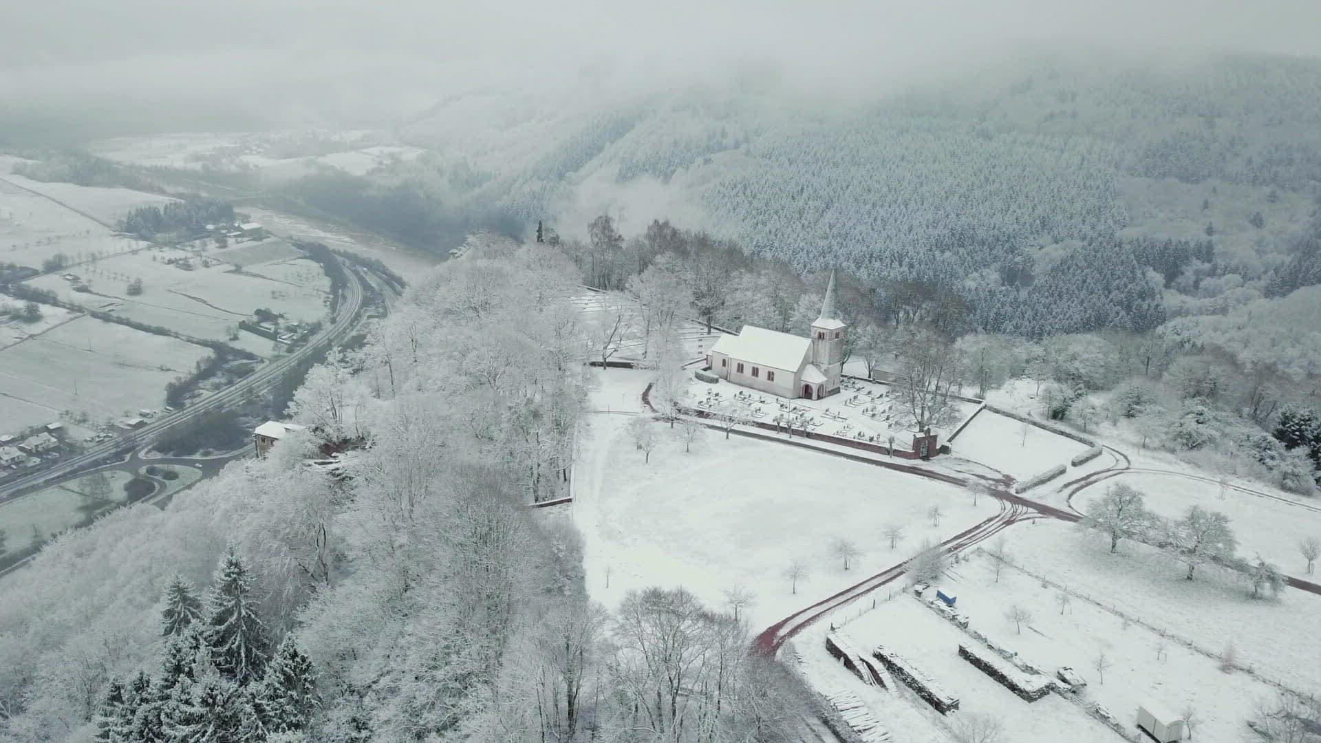 Cemetery at midnight Time lapse 4K. It`s cold winter during strong glaciation of the near landscape.