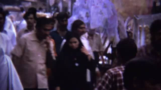 > 1973: People walking crowded arab shopping district street.