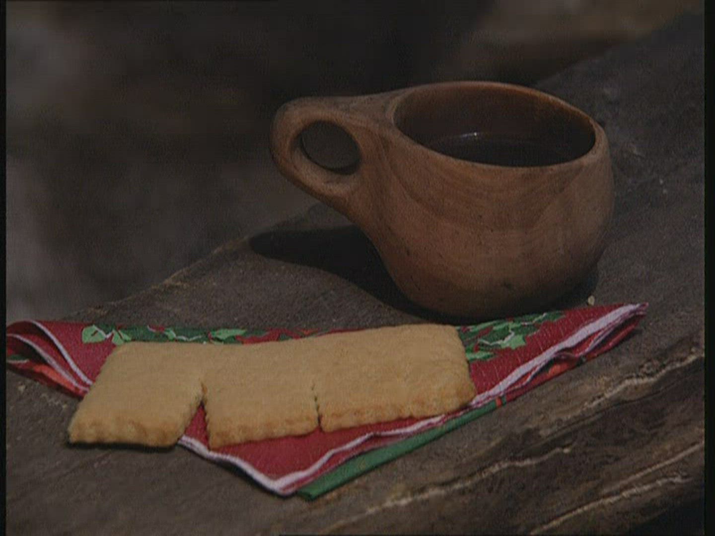 > Fragrant Coffee and Cookies Stand on a Wooden Table. Directions Camera.
