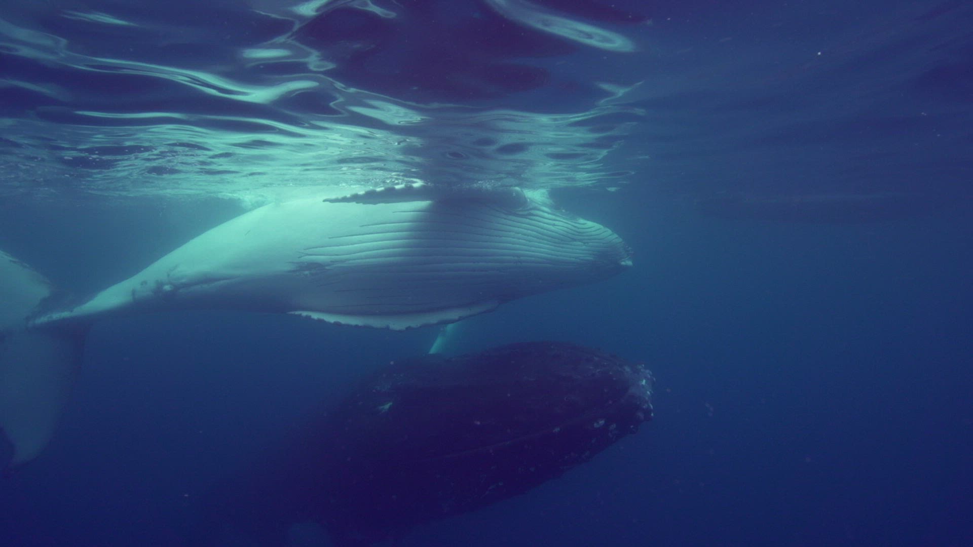 Two Humpback Whales in a calm and beautiful weather in Northside of Iceland, Eyjafjordur.