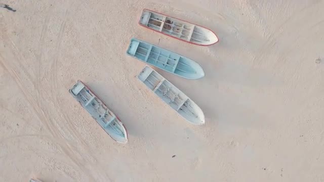 511898 - Aerial shot of fishing boats on beach