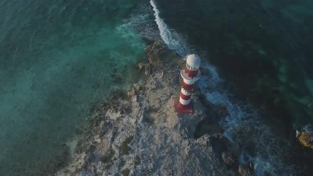 511920 - Aerial shot of lighthouse marina on coastline
